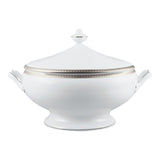 The Athena Platinum pattern by Bernardaud is made for the classic and modern table. Stunning yet understated, white Limoges porcelain with a dynamic platinum border. The geometric motif of the Athena collection by Bernardaud creates a dimensional and graphic appearance. Also available with gold border.