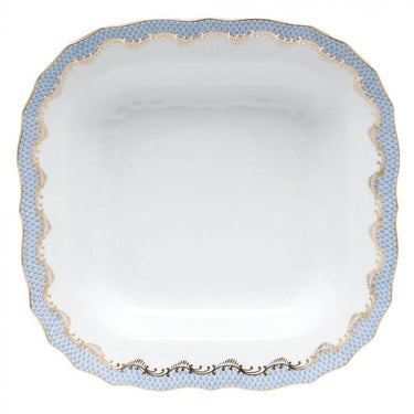 While it has often been used as a complement to Herend's patterns, this dramatic decorative border really comes into its own when it gets top billing. Fish scale is available in multiple shapes in 8 colors: raspberry, rust, brown, gold, two shades of blue and two shades of green.