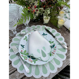 The Drops placemat is crafted in pure linen and boast an intricate embroidered pattern highlighted by a scalloped edge.
