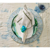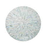 Tahiti, French Polynesia’s largest and most diverse island, is known for its tranquil ocean waters and host of serene lagoons. Evocative of this soothing atmosphere, the Tahiti Collection features natural materials arranged in a fluid style. Rare mother of pearl pieces are hand-dyed a soft blue & periwinkle hue and hand cut to achieve an artisanal look.