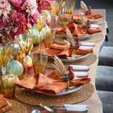 The regal amber color of the Daphne Wine Glass is inherent in the design of the glassware. The glowing golden hue is not painted. Adding to the design of the flute is a hand-wielded knot in clear glass for stunning contrast and visual interest. The wine glass is mouth-blown from colored glass in the Czech Republic.