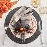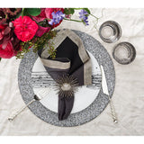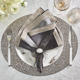 The ombre Dip Dye Napkins in gray and black add a subtle elegance to the linen napkin. They are hand dipped and dyed and accented with a metallic foil facing.