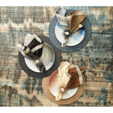 The ombre Dip Dye Napkins in gray and silver adds a subtle elegance to the linen napkin. They are hand dipped and dyed and accented with a metallic foil facing.