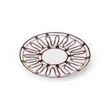 Handcrafted dessert plate in fine porcelain adorned with hand-painted Kyma pattern in brown.