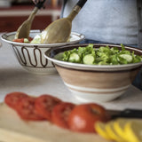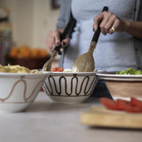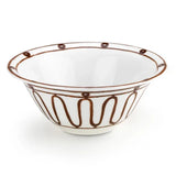 Handcrafted salad bowl in fine porcelain adorned with hand-painted Kyma pattern in brown.