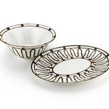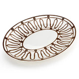 Handcrafted serving platter in fine porcelain adorned with hand-painted Kyma pattern in brown.