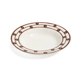 Handcrafted soup plate in fine porcelain adorned with hand-painted Kyma pattern in brown.