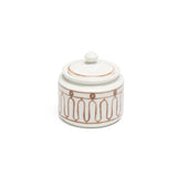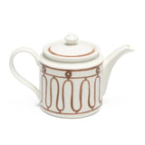 Handcrafted tea set in fine porcelain adorned with hand-painted Kyma pattern in brown.