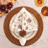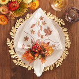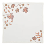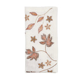 Evoke the spirit of fall with the embroidered Maple Hues Napkin. Autumnal flowers and foliage, with an artisanal hand-drawn quality, dance across the crisp white linen backdrop. This decorative napkin combines intricate orange, rust, and burgundy embroidery, adding a festive touch to fall gatherings. Versatile and charming, the Maple Hues Napkin introduces a warm and inviting touch to your table settings.