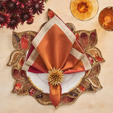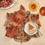 Embrace the essence of fall with the Maple Hues placemat, inspired by the changing colors of autumn. Crafted with over 30 different glass beads and sequins in rich autumnal shades, the placemat showcases ombre maple leaves with three-dimensional beading and layered sequin techniques. The result is a life-like bouquet of leaves with depth and texture. This placemat features seasonal hues of warm browns, metallic golds, and burnt oranges. Perfect for formal entertaining and lavish events, the grandeur of the Maple Hue placemat will elevate your seasonal table. Complete the festive look with the coordinating Maple Hue runner and coasters for a polished fall ensemble.