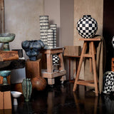 An iconic footed bowl in an oxidized bronze glaze that coordinates with decorative pieces from our Cenote collection. Each bowl flaunts a unique position of resting on its stand, determined by its position in the kiln during the firing. In a group this lends an organic quality, resembling a cluster of wild mushrooms.