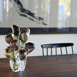 Organic sculptural compositions of multiple smaller pod-shapes fused together while hot to form large pieces. Bottoms are cut and polished. No two exactly alike. Three sizes, three colors. All glass dimensions are approximate – handblown glass dimensions vary by nature and intent.