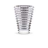 The extraordinary craftsmanship—horizontal bevel cuts on the outside and vertical bevel cuts on the inside produces a brilliant optical effect, rendered all the more intricate in the light. The Eye Vase maximizes the unpredictability of perception, evoking delight and surprise about what the eye can discern with shifts in luminosity. The tiers gently ripple, thus imbuing a sense of movement, a rippling continuum. The gleaming symmetry plays on perspective, as the refraction of light create great depth throughout the layers. The contours conjure a Clear crystal cyclone, magnetically pulling you in like a vortex. The entrancing attributes of the Eye vase are also characteristic of the Baccarat Clear crystal Eye votive.