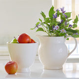 This handcrafted ceramic pitcher is enhanced with a ribbing effect created by the potter’s own hand. It has a pure, artisanal look, and is equally suited to holding water or juice or a flower arrangement.