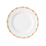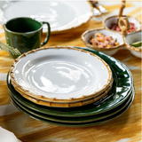 This companion plate adds an extra lovely layer to table settings. The classic bamboo rim pays homage to tradition while a salad served with edible petals adds a modern twist.