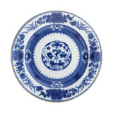 Since the Ming Dynasty, imperial blue and white porcelains have been prized by collectors and connoisseurs around the world. Edged in 22K gold, this underglaze blue dinner service is based on a Chinese export pattern, ca. 1730. The elegant design features a central flowered medallion, continuous collar and floral sprays.