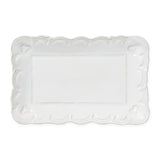 Inspired by the famed lace prominent on Venice's Burano Island, the Incanto Stone White Lace Small Rectangular Platter is handcrafted of stoneware and highly durable for those moments that require both beauty and strength.