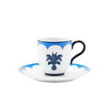 Aquazzura's Jaipur collection evokes the scents and atmospheres of a journey to India, one of Edgardo Osorio's most-loved destinations. Our Jaiper Coffee Set is destined to be a treasured duo for your steaming, favorite beverage. Crafted from porcelain in a classic blue print, the pairing features exquisite details that will invigorate any table decor.