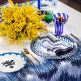 Aquazzura's Jaipur collection was created through a love of travel, pattern, geometry, and adventure. The floral motifs are inspired by ancient temple drawings, paired with chevrons and stripes for a contemporary layered tabletop twist. Crafted of porcelain, the Jaipur dinner plate evokes the scents and atmospheres of a journey to India, one of Edgardo Osorio's most-loved destinations.