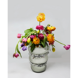 Frills Vase took inspiration from the cult film 'Marie Antoinette's indulgent desserts table with colorful Chantilly decorated cakes and petit-fourre. The curves of the vase are accentuated by frills using the Murano 'clown collar' technique. The sculptural vase is mirrored to give a dramatic effect.