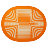 Unexpected and decidedly modern, these placemats are a striking addition to the table. High gloss lacquer is paired with sleek curvilinear stripes and rendered in an intriguing color combination. The vivid contrast of orange and white feels both contemporary and fun. Pair with coordinating Antibes coasters.