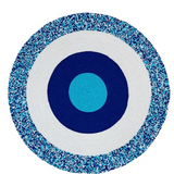 Petite glass beads are interlaced to create a richly dynamic design. The Charm Placemats display a popping pattern of geometric circles in brilliant light and dark blues. Pair with the coordinating Charm Coasters.