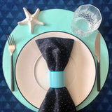 With sleek stripes and a pop of color, these high-gloss lacquer napkin rings enliven any setting.