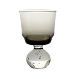 This ash gray stem glass combines the smooth texture of Eternal Snow with an atypical glassblown shape. Tiny playful bubbles are visible in the base of the glass. A unique design by Bela Selva.