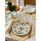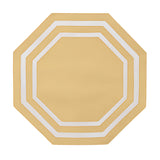 Octogonal yellow placemat with appliqué in yellow and white.