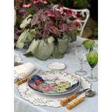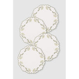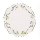 This placemat is woven from natural linen offset by floral embroideries and a contrast trim.