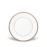 Mirroring the waves of its namesake sea, Aegean Filet dinnerware features a timeless pattern of scales in a delicately scalloped border, hand-applied in 24K gold and platinum.