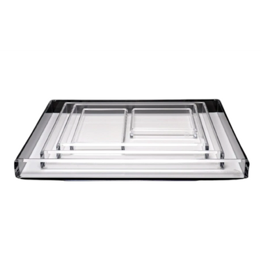 These AVF acrylic trays are great for many different things, including serving your guests appetizers and drinks, organizing an office, or even just to add color to a room. Mix and match to make your own customized set of nesting or stacked trays.