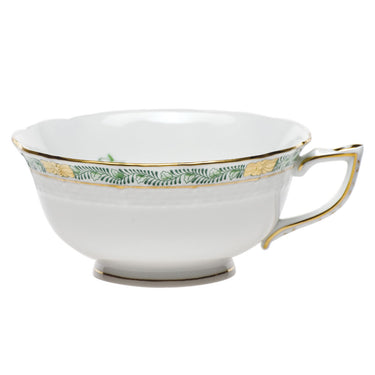 Like a pretty silk ribbon used to tie a bridal bouquet, the garland usually plays a supporting role by embellishing the peony motif of the Chinese Bouquet pattern. Here it becomes the principal source of beauty by draping the edges of its porcelain host with stylized vines and gold rosettes.