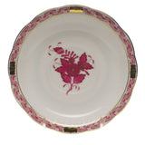 Originally created in 1930 in raspberry coloration for Count Albert Apponyi, the pattern features a center motif of a stylized peony surrounded by a garland of leaves with 24K gold rosettes. It is available in multiple color options.