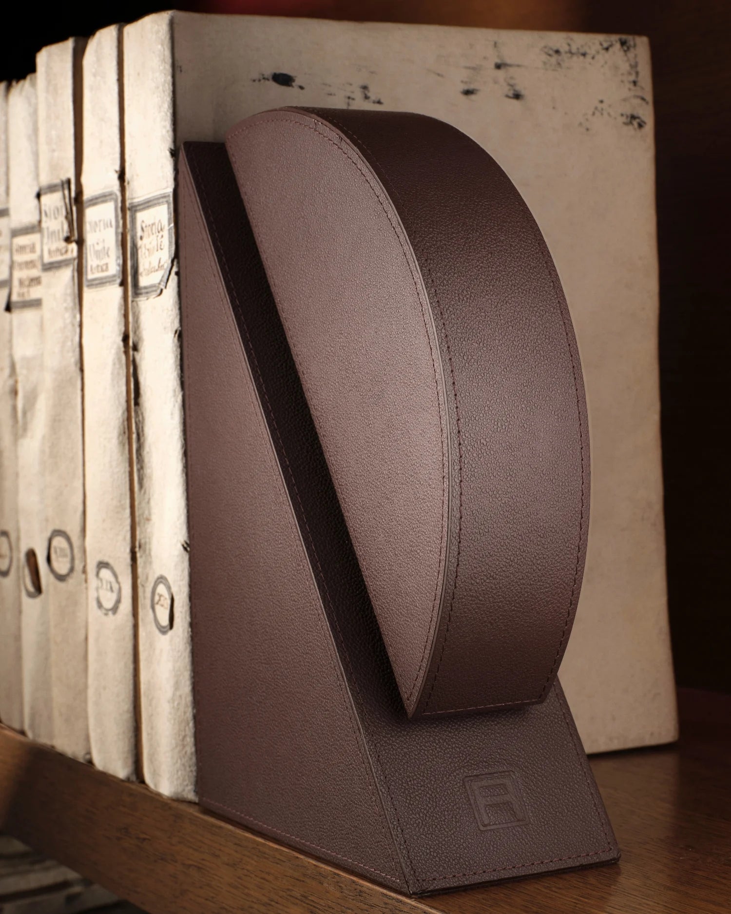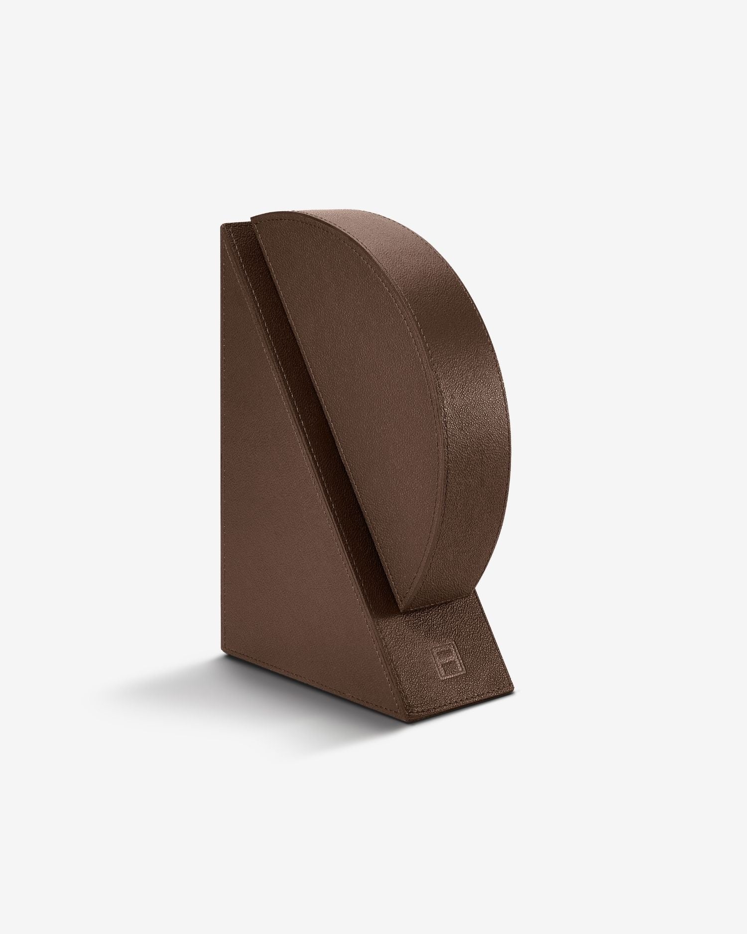 The Cubist Bookends combine the worlds of design and art. Inspired by the iconic art movement, these sculptures are wrapped in pebbled leather and feature subtle brass hardware, making them perfect for cultural connoisseurs. Sold separately, each piece features its own distinct character, highlighted by smooth curves and a modernist flair. Pairs with the Cubist Bookend, Left.