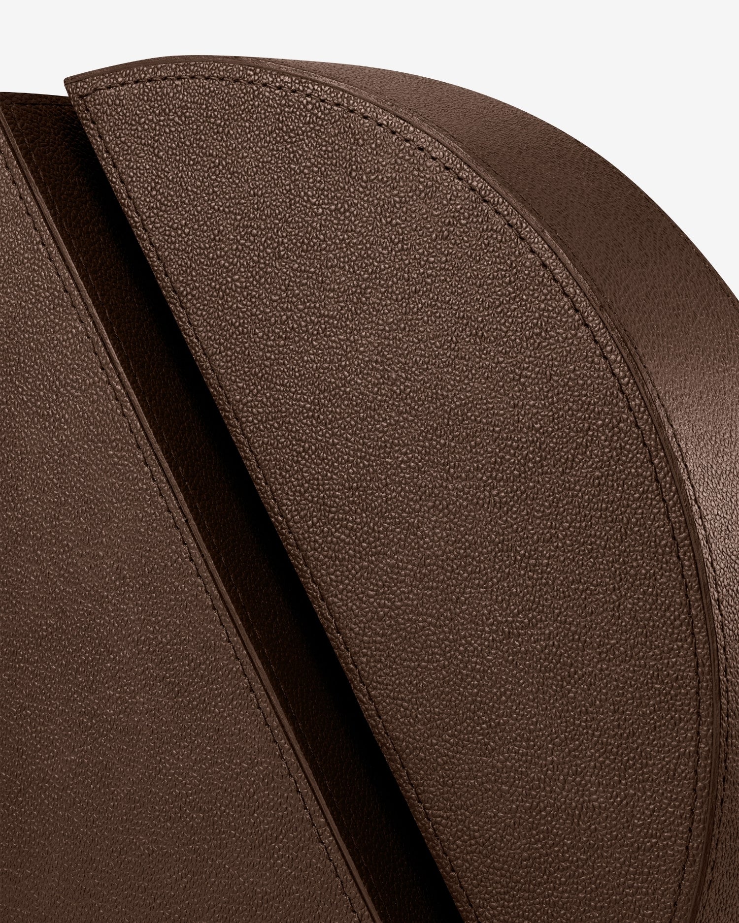 • Materials: Pebbled Leather, Walnut Wood, Brushed Matte Brass, Suede Bottom
