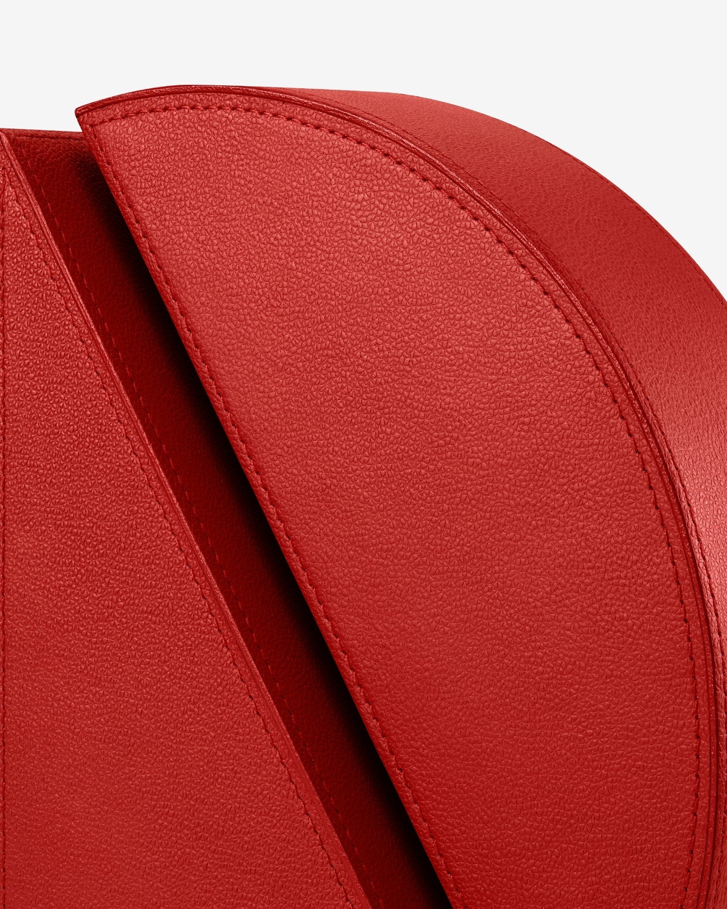 - Materials: Pebbled Leather, Walnut Wood, Brushed Matte Brass, Suede Bottom
