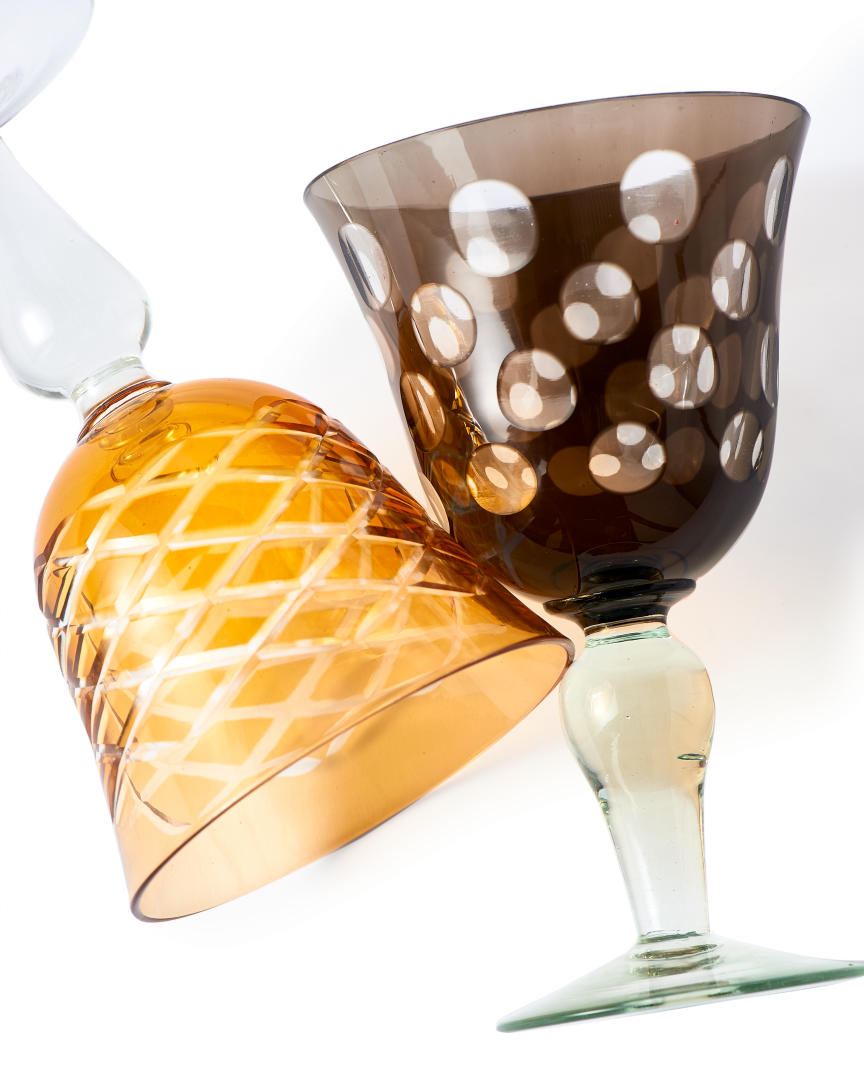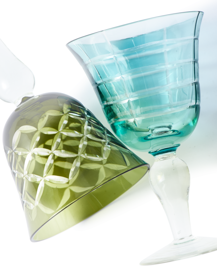 Polspotten's Cuttings Wine Glasses are made from full colored glass and each has its own unique ‘cutting’ pattern. Perfect for weddings, events, or entertaining guests.