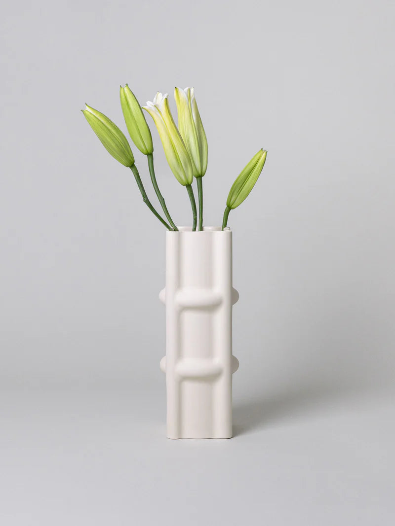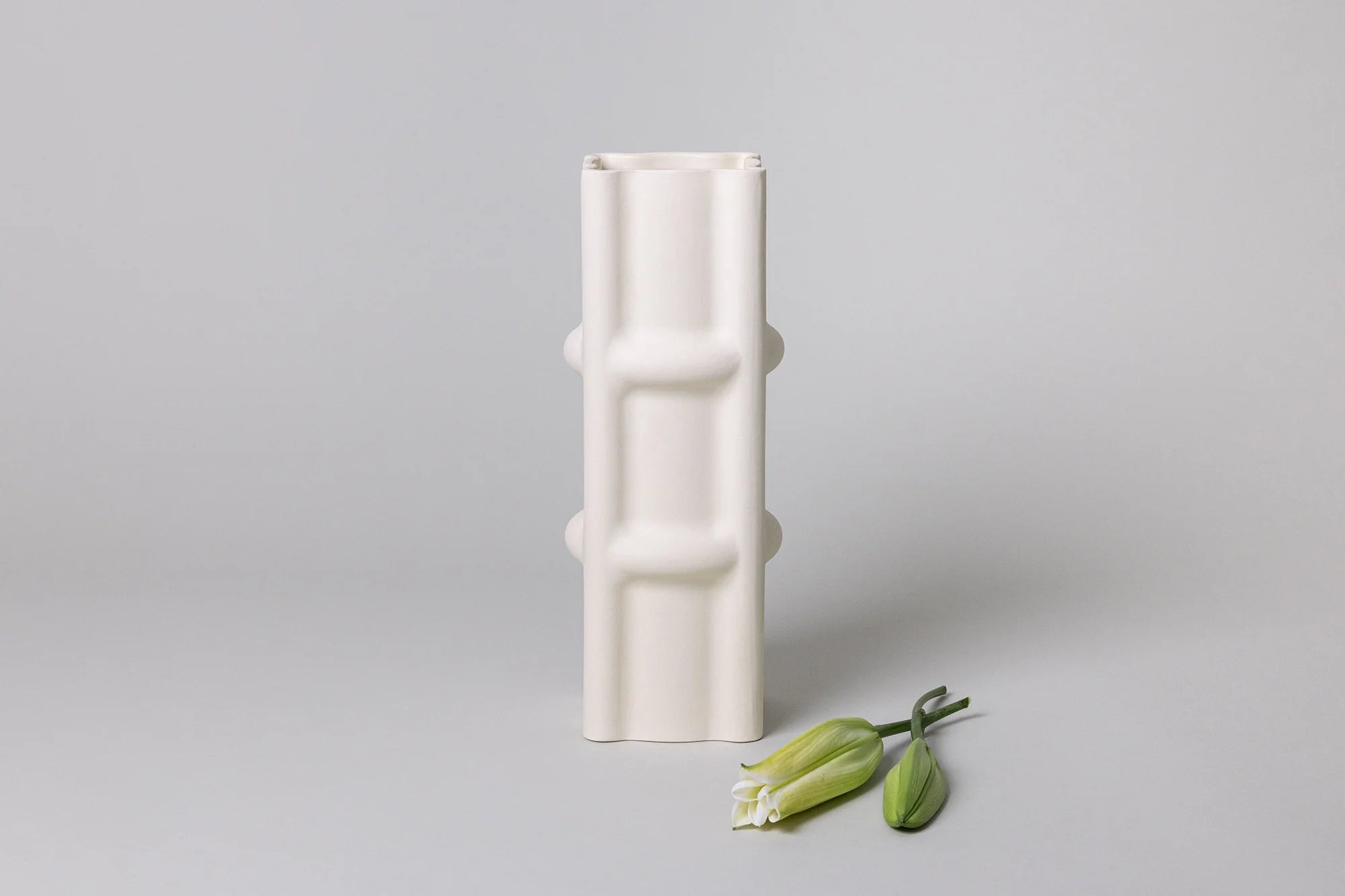 Faye is a seamless union of our signature coil and slab forms. Thoughtfully slip-cast, this piece elegantly bridges the two worlds together. With its scallop-like symmetry, Faye balances restraint and organic beauty—an ode to both structure and softness. A statement piece, whether adorned with fresh flowers or not, its silhouette invites you to experience its subtle rhythm, embodying the essence of sculptural refinement.