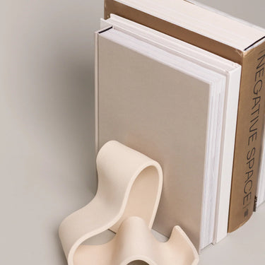 The Fettu's design is inspired by the organic, ribbon-like forms of fettuccine. Wide enough to have a nice bite and substantial enough to maintain its form, the Fettu is equal parts playful and grounding. Rhythmic in form, its sculptural tendencies disguise its function, allowing it to serve as bookends or an art object.