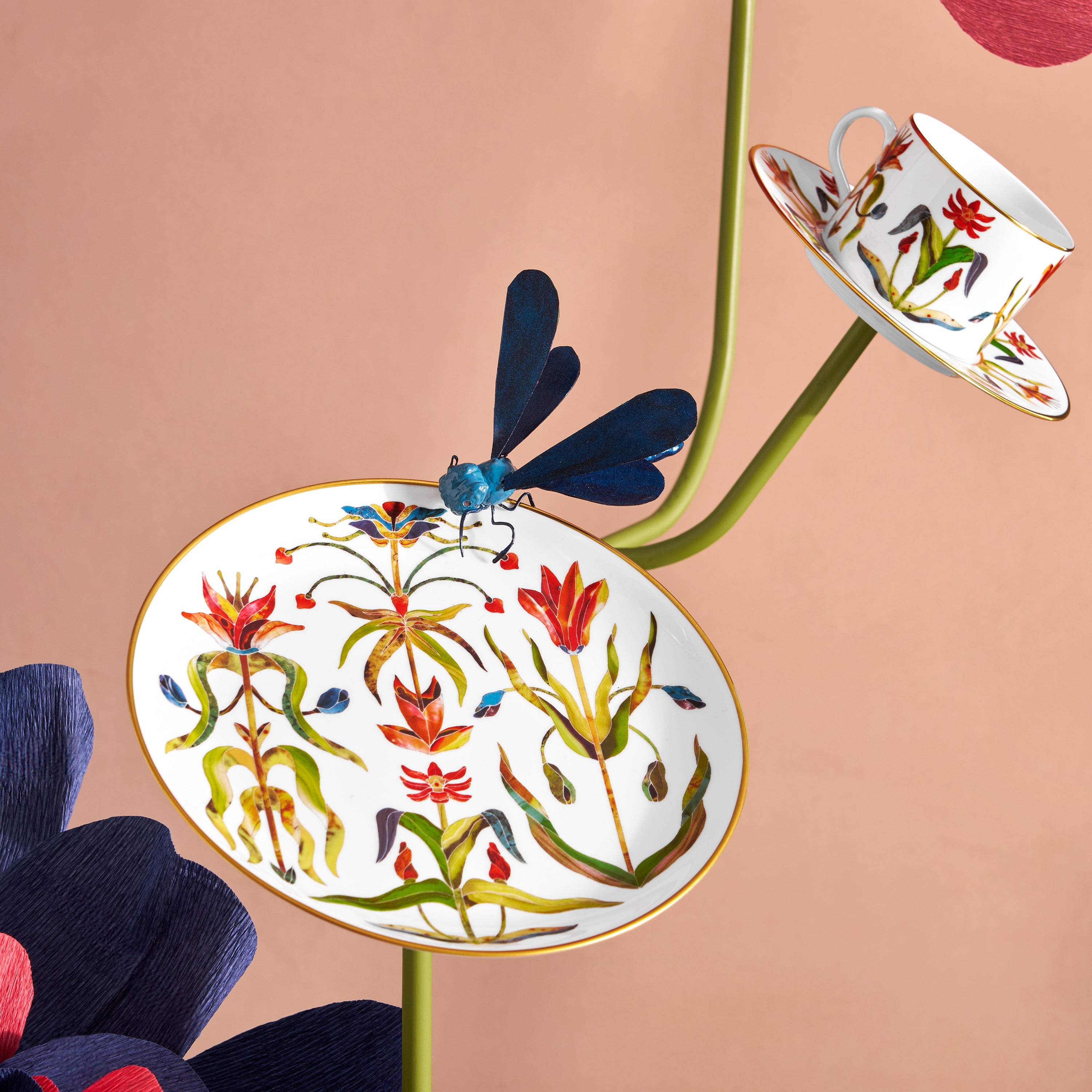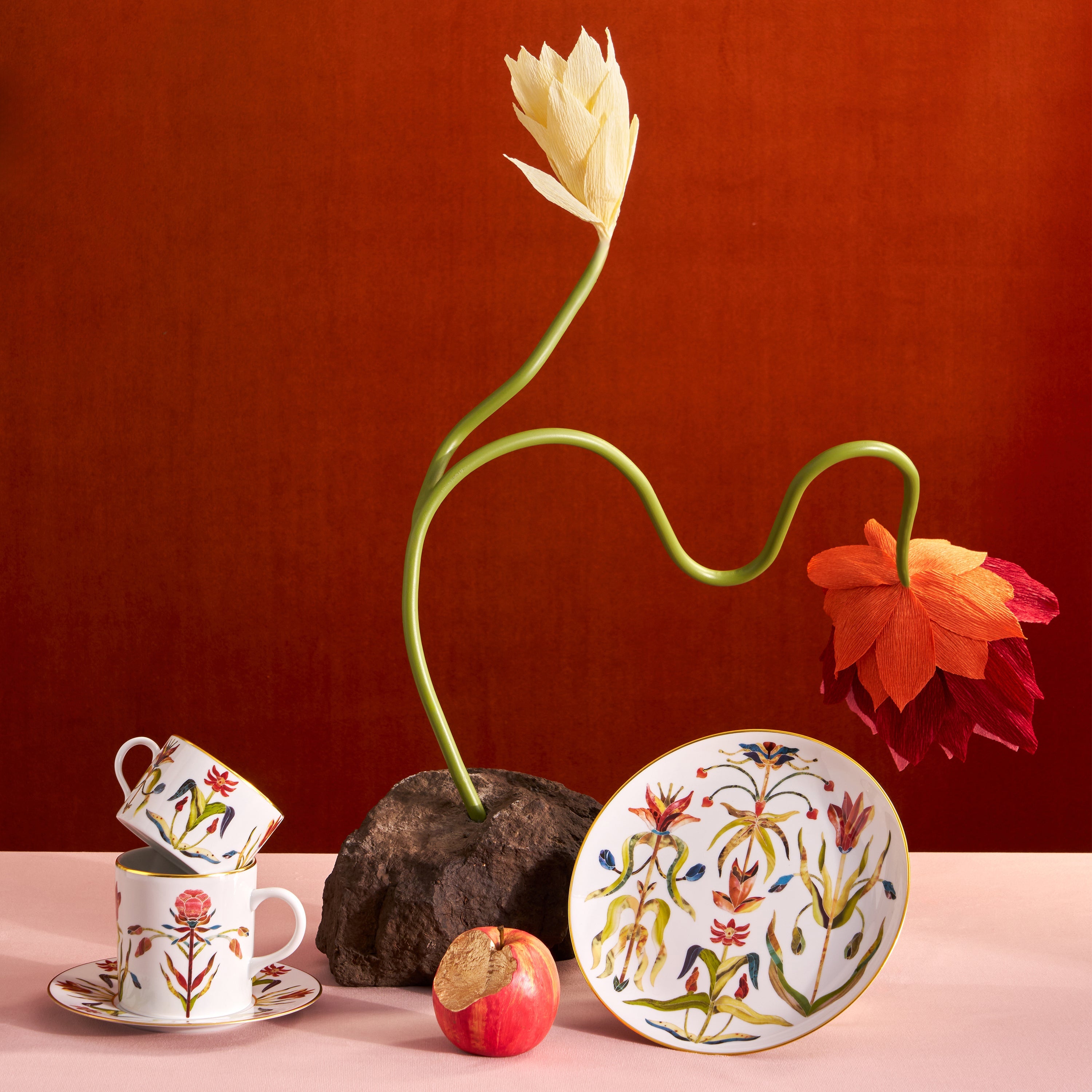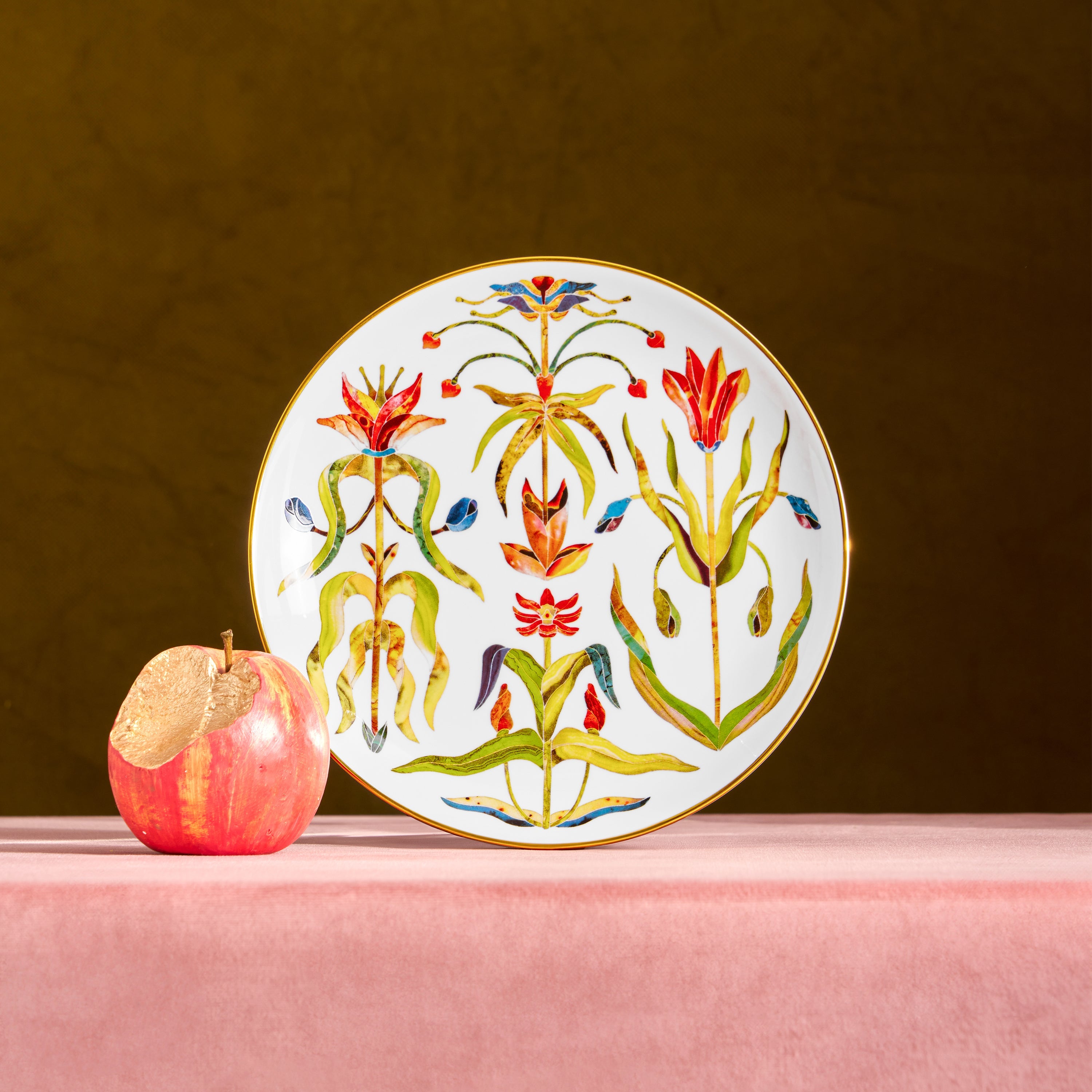 The Grand Tour Dessert Plate captures the spirit of a refined journey through Europe, translating historic Pietra dura inlays into jewel-toned botanicals. Crafted in luminous porcelain and accented with hand-painted 24k gold, it invites layered tablescapes and elegant presentation, echoing the curiosity and the pleasure of collecting objects of beauty.