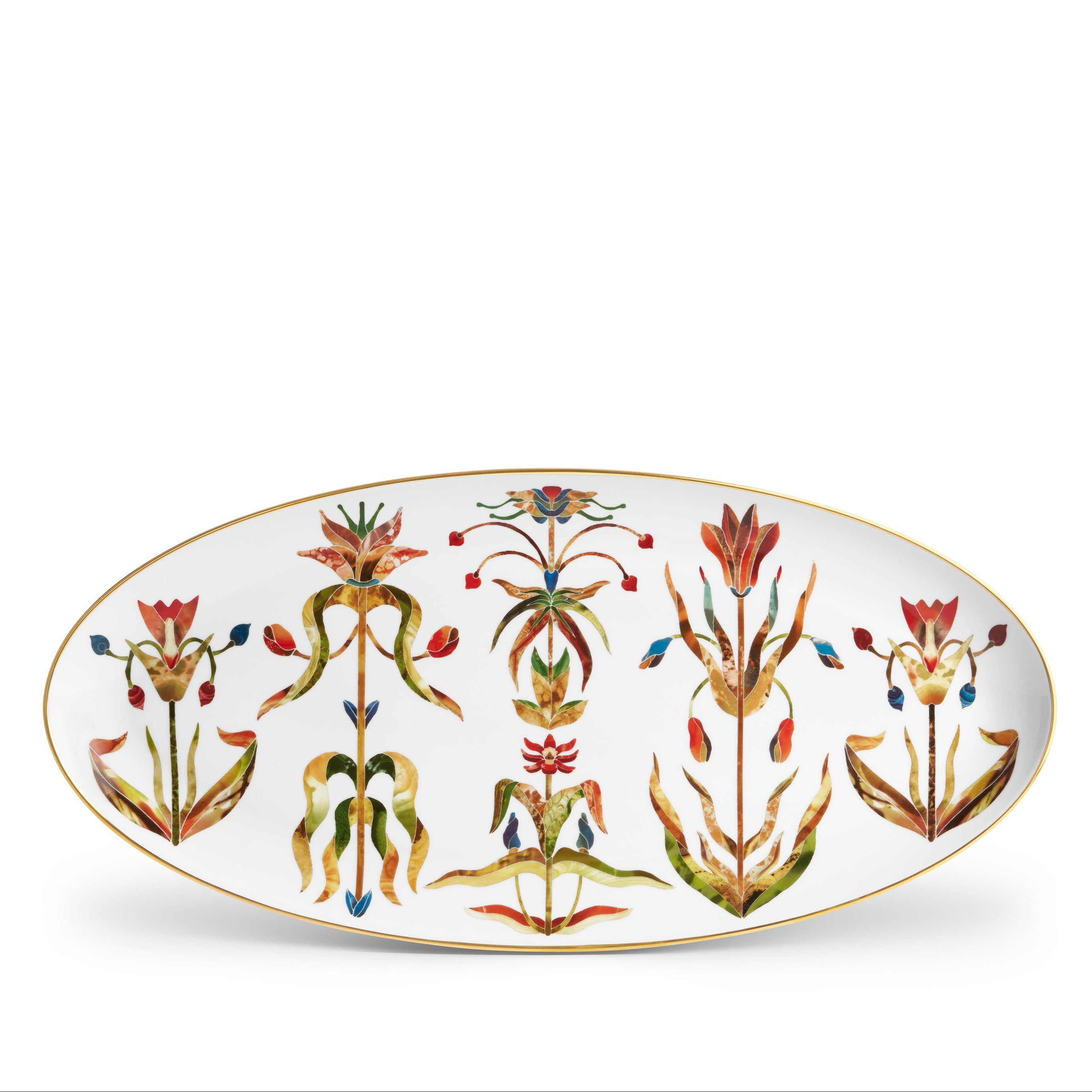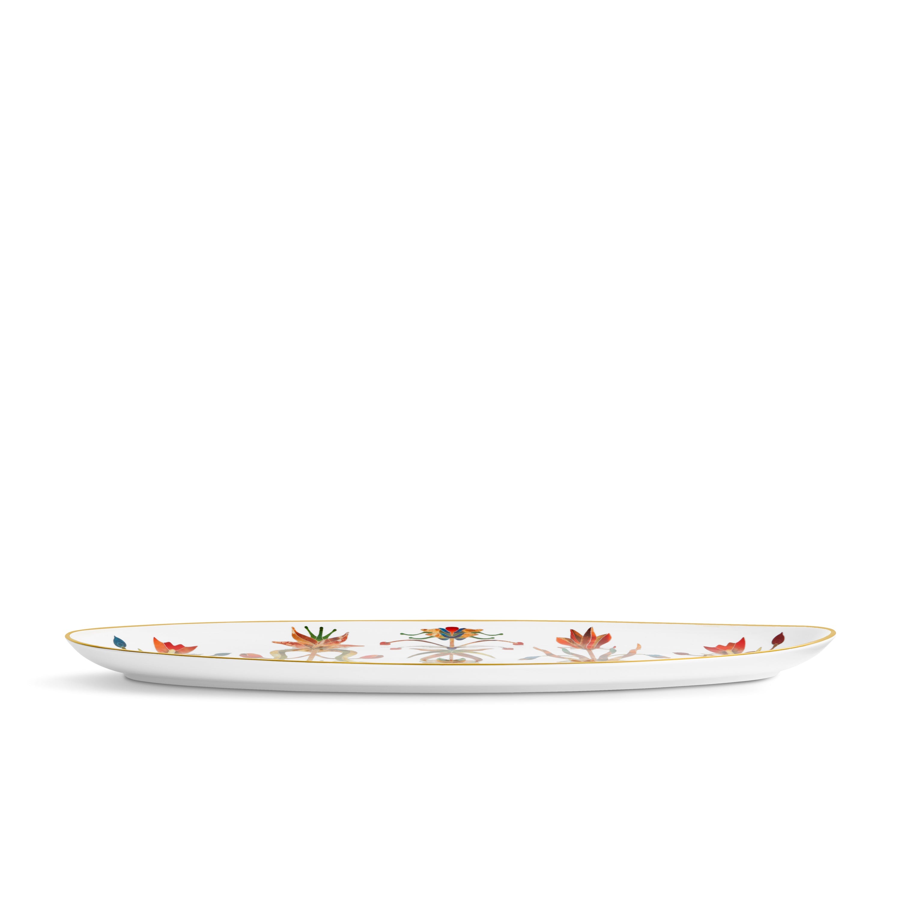 The Grand Tour Large Oval Platter embodies the grandeur and curiosity of European journeys between the 17th and early 19th century. Hand-painted 24k gold and jewel-like botanicals create a multi-layered tableau reminiscent of treasures gathered across Italy, France, and Greece, transforming any table into a curated exhibition of discovery. Ideal for festive gatherings and abundant displays.