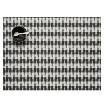 A bold exploration of black and white, Harp adds rich texture to the graphic interplay of horizontal and vertical forms. It represents the Chilewich design team’s dedication to pushing the boundaries of weaving through the integration of larger “floats”—the weft yarns that create a pattern by passing over clusters of warp threads in a planned sequence, and vice versa.