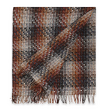 Pure wool jacquard blanket with gradient-effect tartan weave. Fringed.
