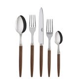 A model full of finesse. First the handle, straight and thin, inspired by brushes, then the noble material, in dark wood. Finally the connector, minimalist, is the perfect transition. This 5-piece Sabre set includes a soup spoon, a dinner fork, a dinner knife, a teaspoon and a salad fork.