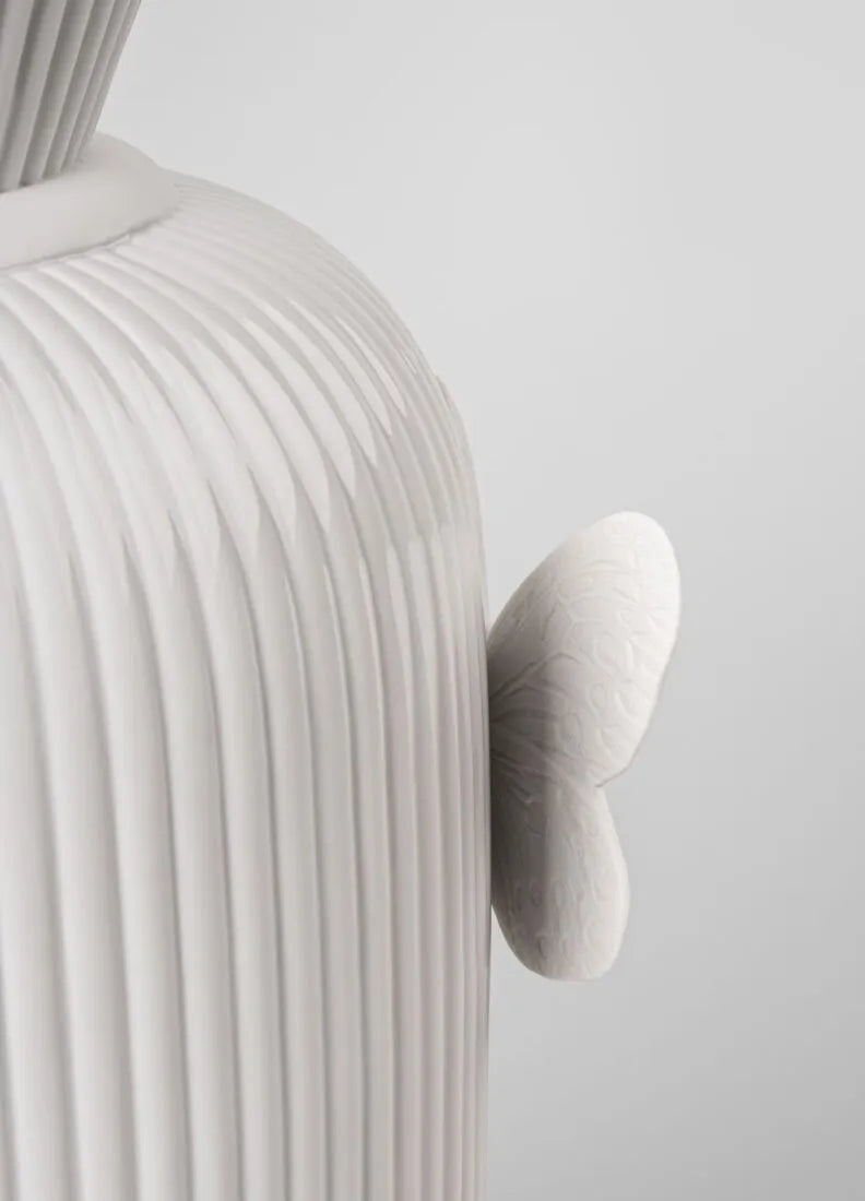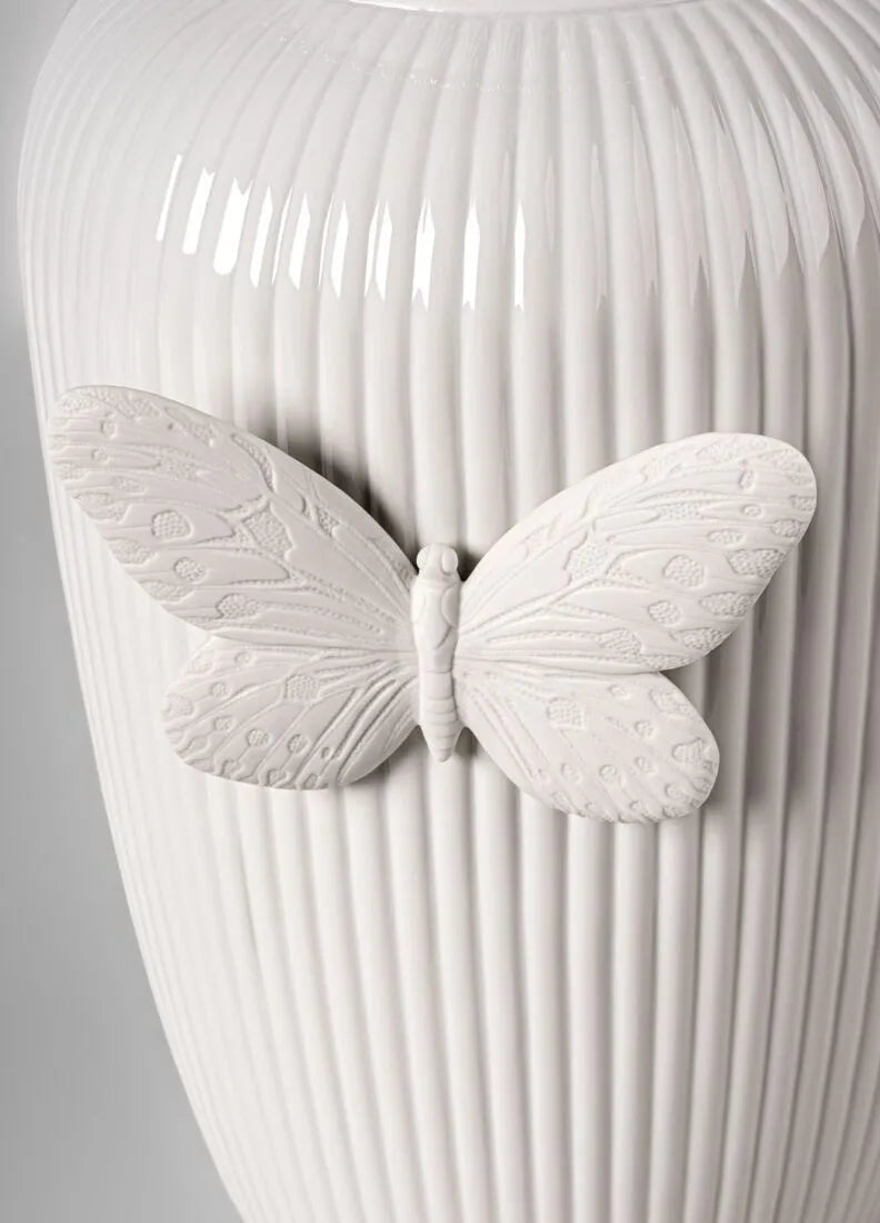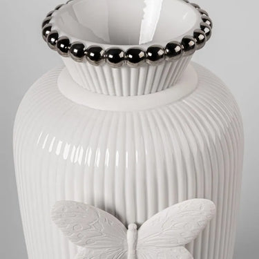 The Lady Luck vase, part of the collection designed by Olga Hanono, transforms porcelain into an artistic object of extraordinary beauty. Its wavy form, crafted in matte white porcelain, is complemented by a hand-painted butterfly, a symbol of transformation and good fortune.