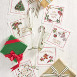 The Merry and Bright Napkins add gilded glamour to hot cocoa and holiday canapés. Embroidered with six unique festive greetings, this linen set is a must-have for cocktail parties and a delightful gift for the traditional hostess.