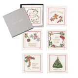 Merry and Bright Cocktail Napkin in White, Red & Green, Set of 6