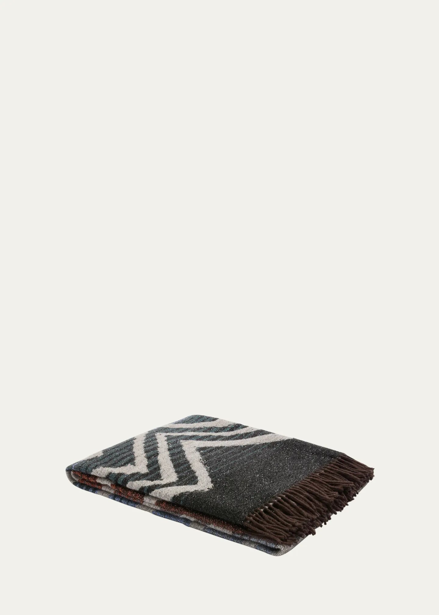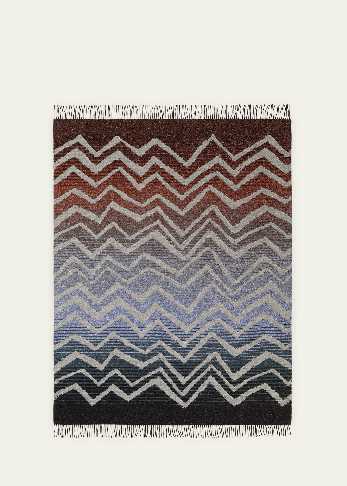 Finished with a fringe trim on two sides, this throw blanket features Missoni's signature chevron in an abstract style atop an ombre background.