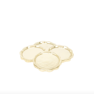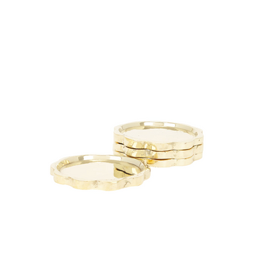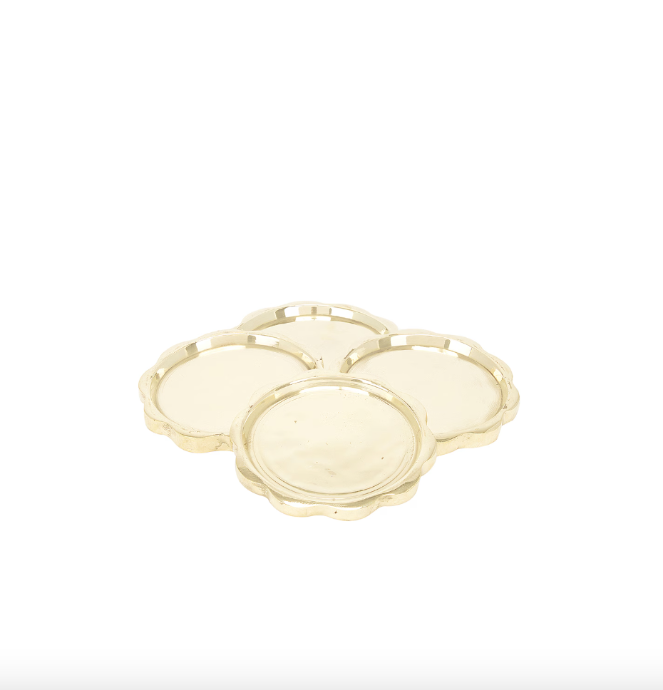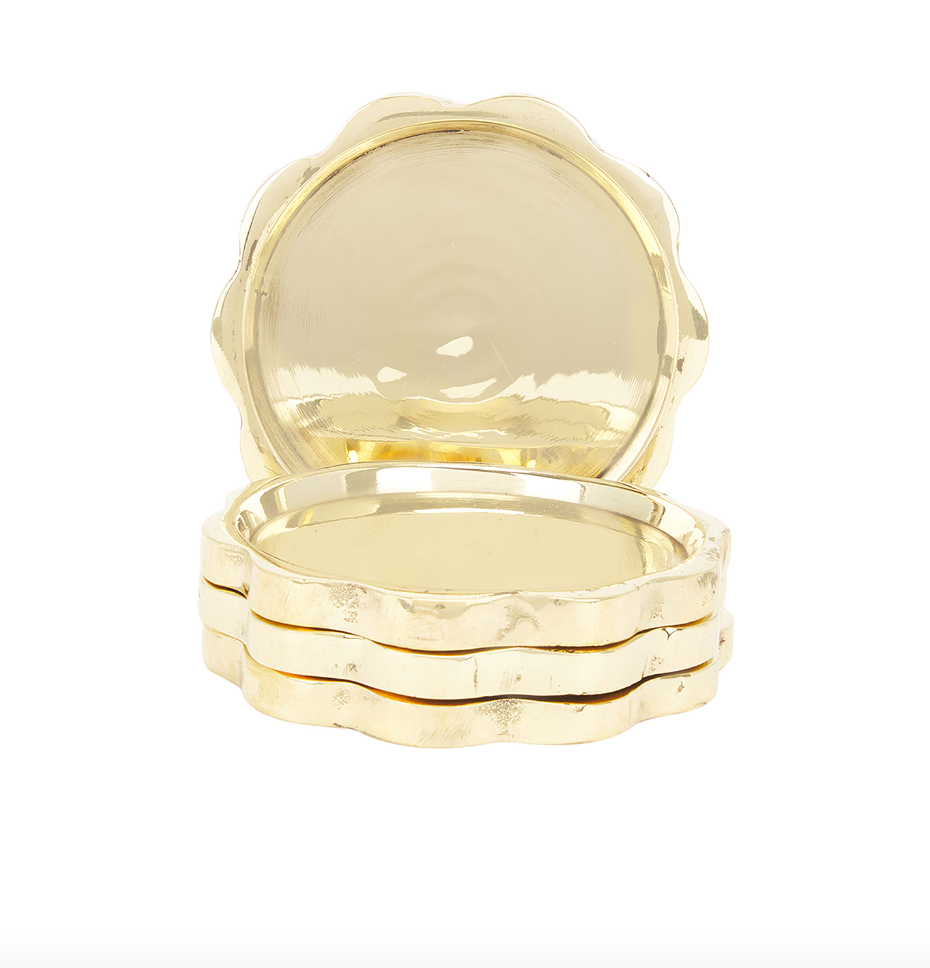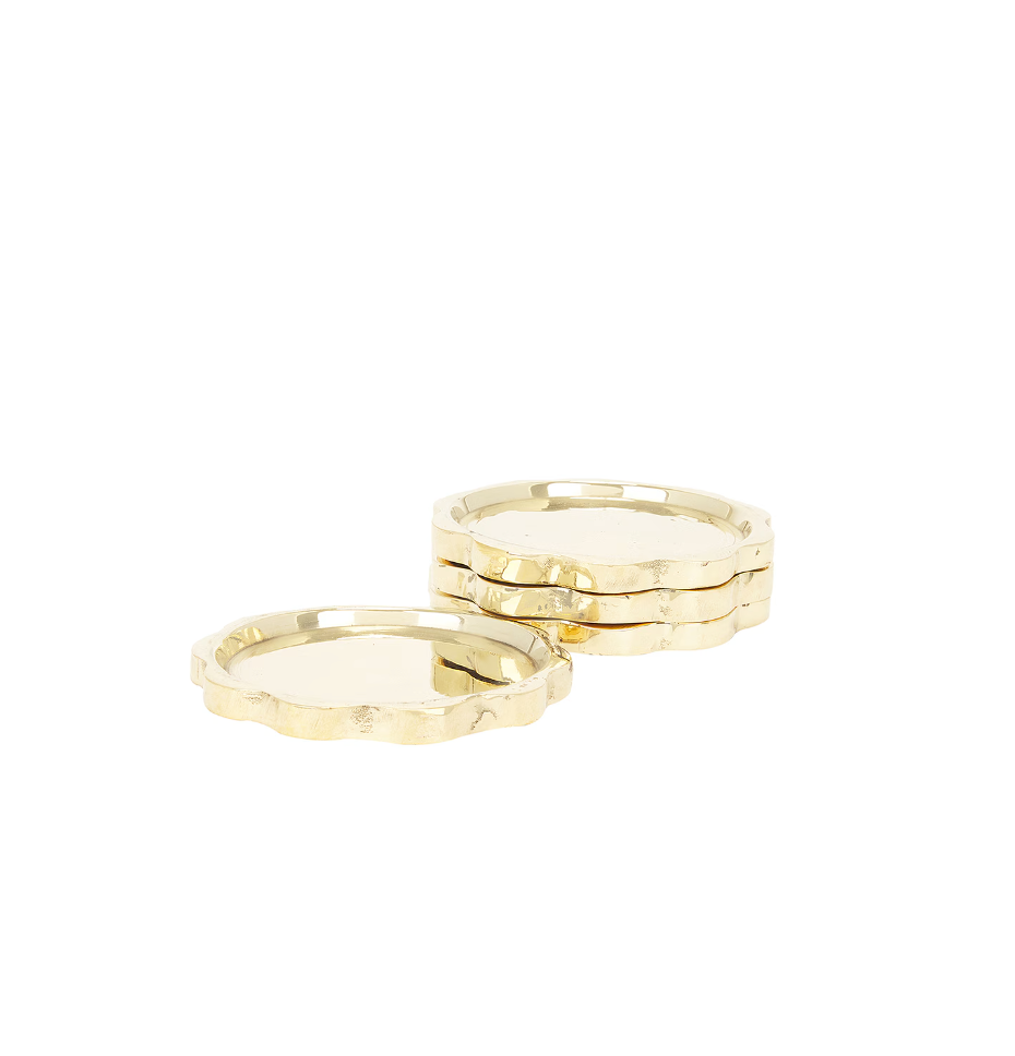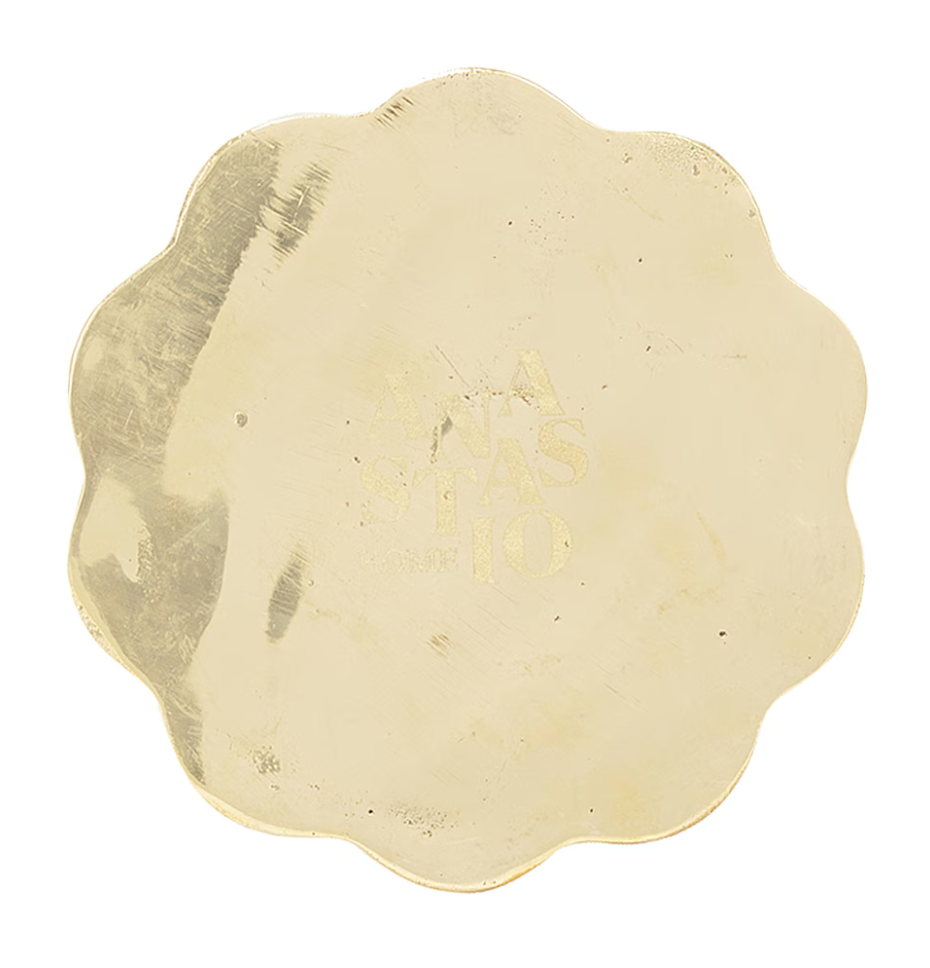 Scalloped and compact—the Sun Coasters carry the rhythm of the Sun series into a smaller form. Made in sets of four, each coaster is carved from solid stone or cast in metal, then finished by hand. At 3.5″ across, they’re scaled for glasses and mugs, offering daily function with sculptural presence. Over time, stone reveals its natural veining while brass or aluminum develops a soft patina, making every set unique to its material and use.
